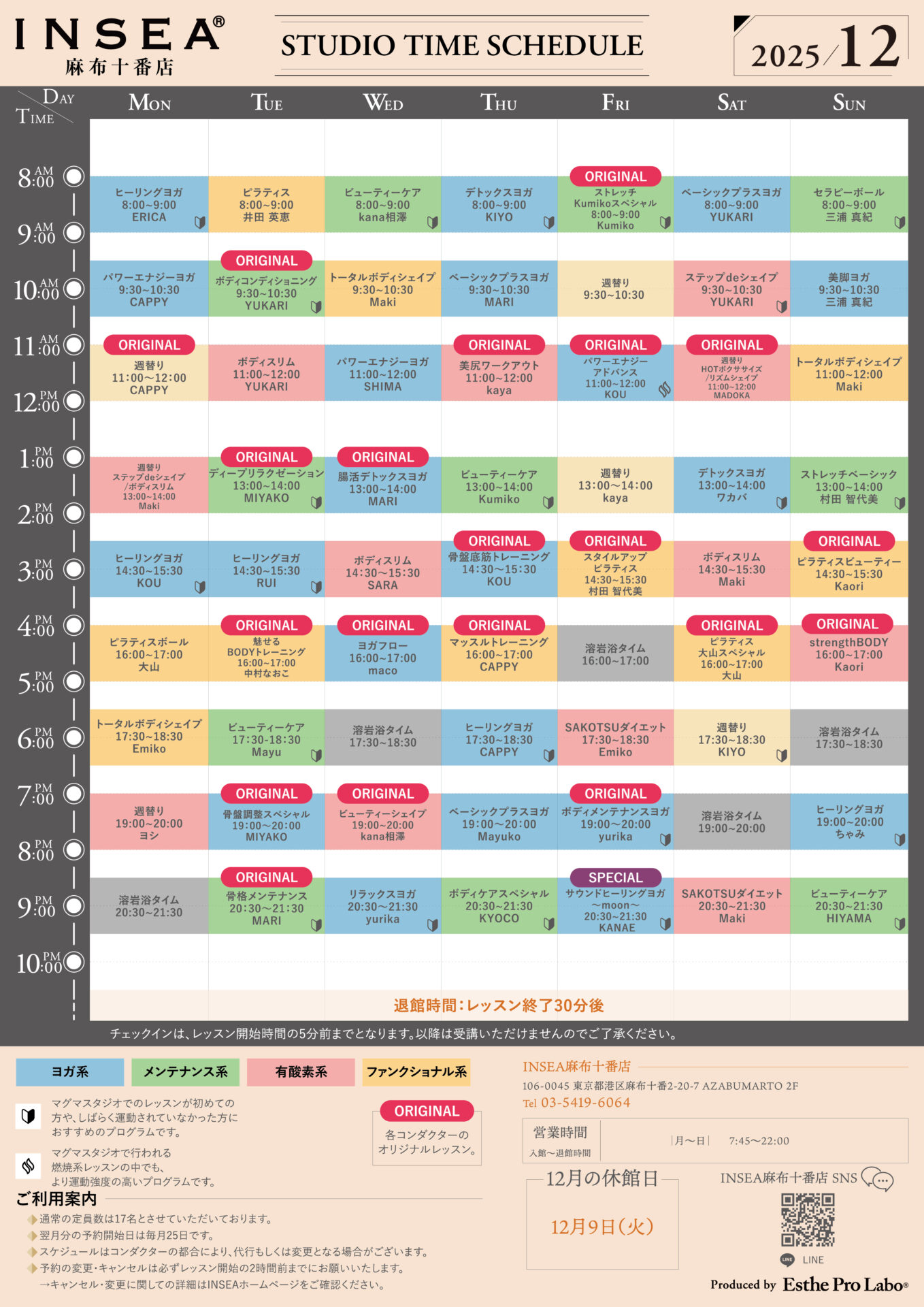 ※麻布十番店、六本木店、用賀店は女性専用スタジオです。ご注意ください。