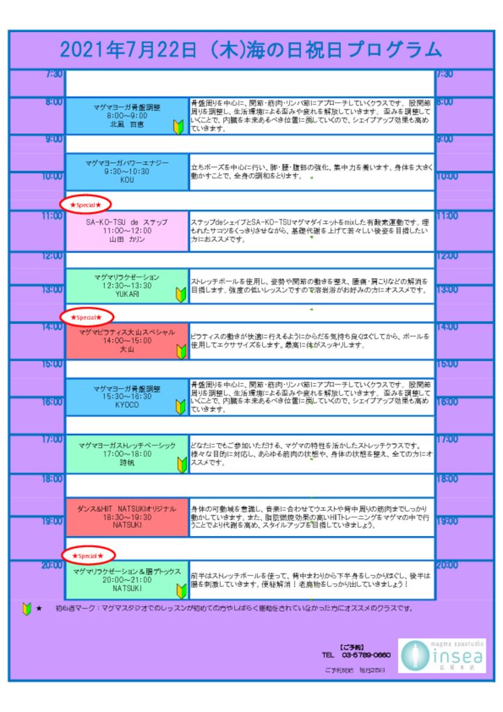 7月22日(木)海の日プログラム➡広尾本店/用賀店/五反田店