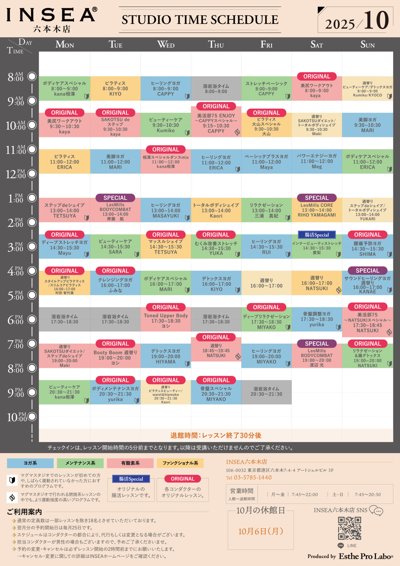 ※以下週替りレッスンは、9月24日現在の最新情報です。以降変更や追加になっている場合もございます。最新情報は、予約ページよりご確認ください。