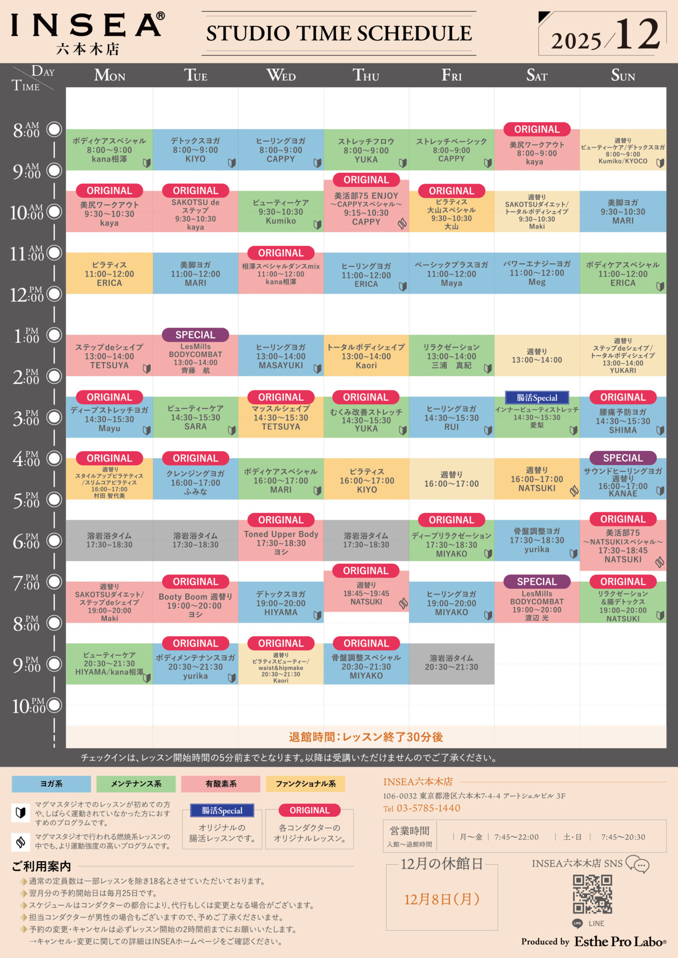 ※以下週替りレッスンは、10月24日現在の最新情報です。以降変更や追加になっている場合もございます。最新情報は、予約ページよりご確認ください。