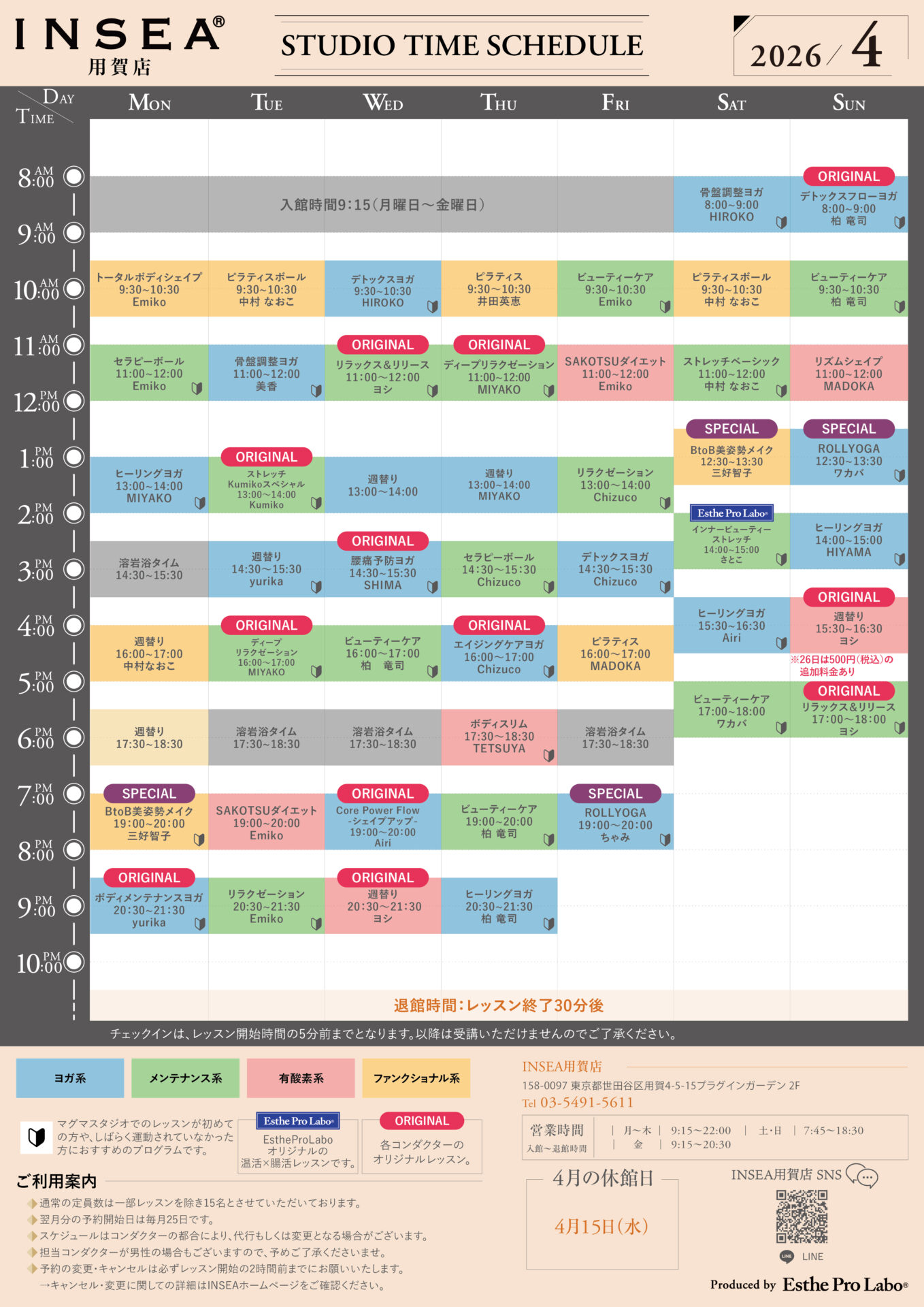 ※以下週替りレッスンは、3月24日現在の最新情報です。以降変更や追加になっている場合もございます。最新情報は、予約ページよりご確認ください。